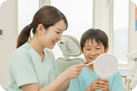 特に男の子は、フロスの習慣化がとても大切です。将来忙しくなり、夜は遅くなり、土曜日が休みでも病院に行けないことが増えるからです。 完璧じゃなくていい。でも、なんとか続いている毎日が大事です。小学生のうちに毎日フロスをする経験を積んだ子は、中学・高校、そして20 代になっても、週に2〜3回は自然とフロスをしてくれます。 仕上げ磨きのときは、夜だけでいいので、必ず毎日フロスをしてください。それが、将来歯で困らない大人への一番の近道です。